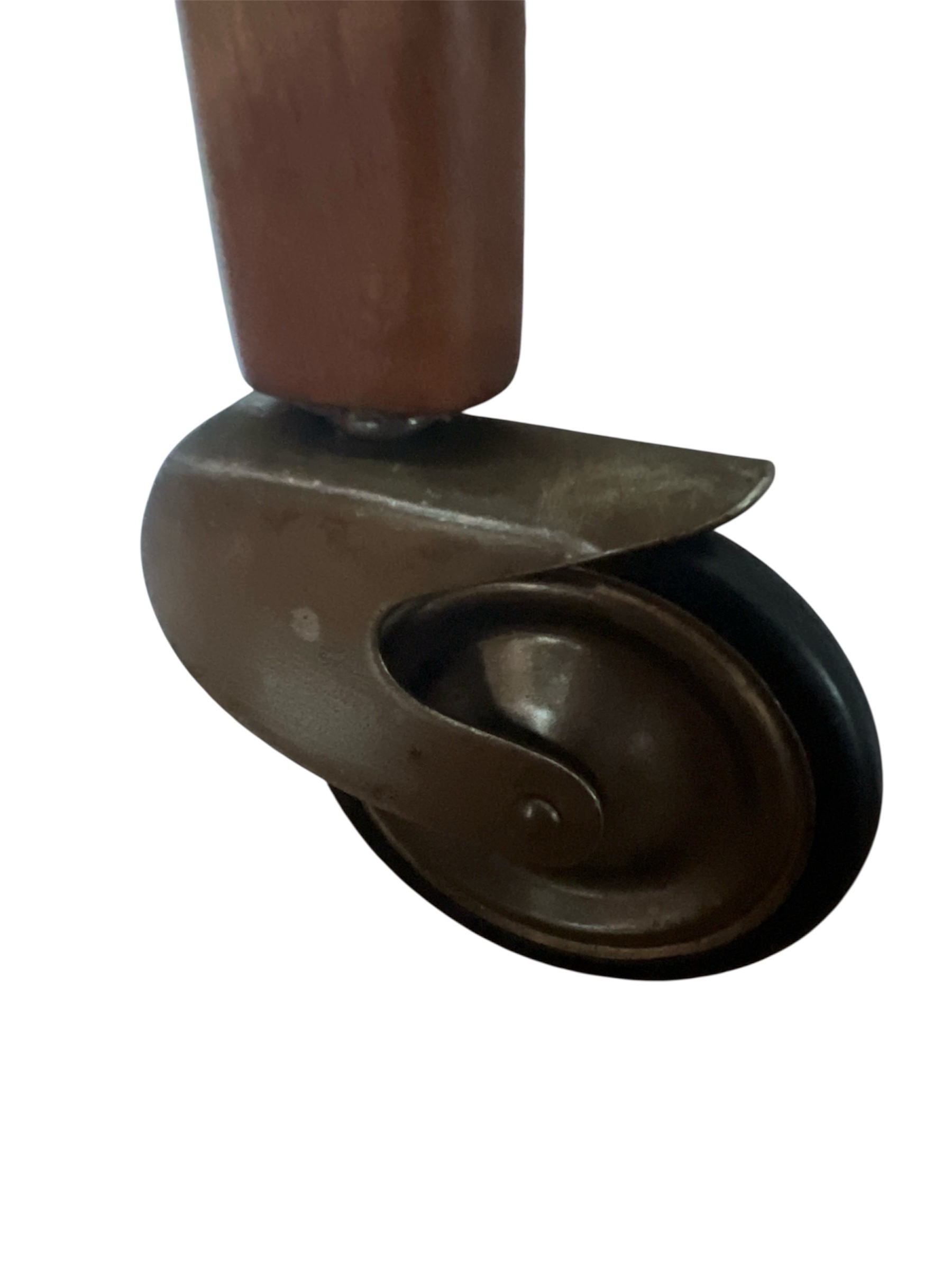 Danish Mid-Century Modern Teak & Glass Bar Cart / Serving Trolley on Brass Casters