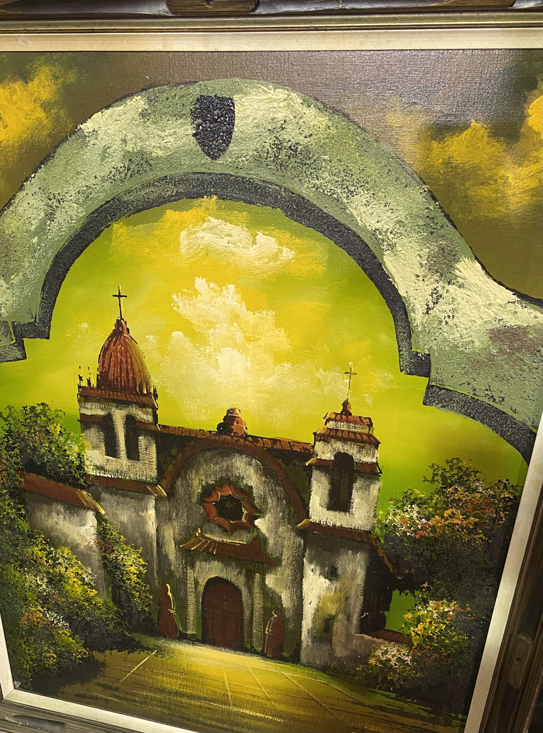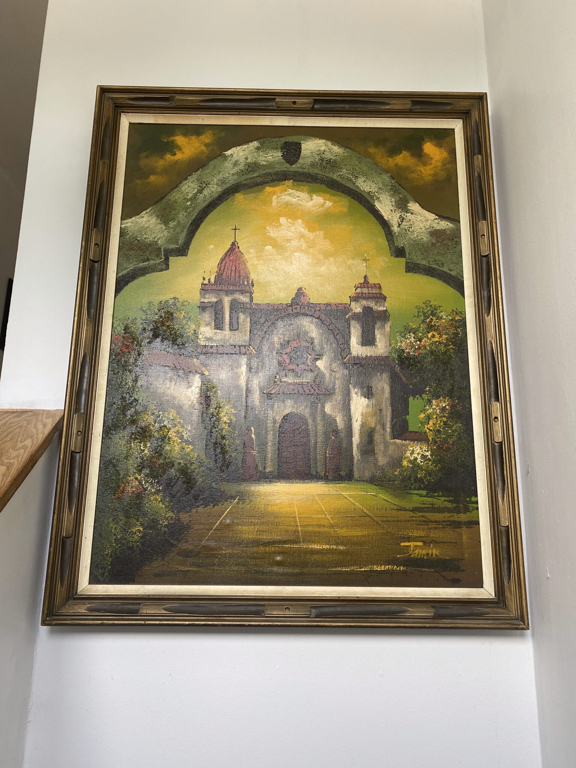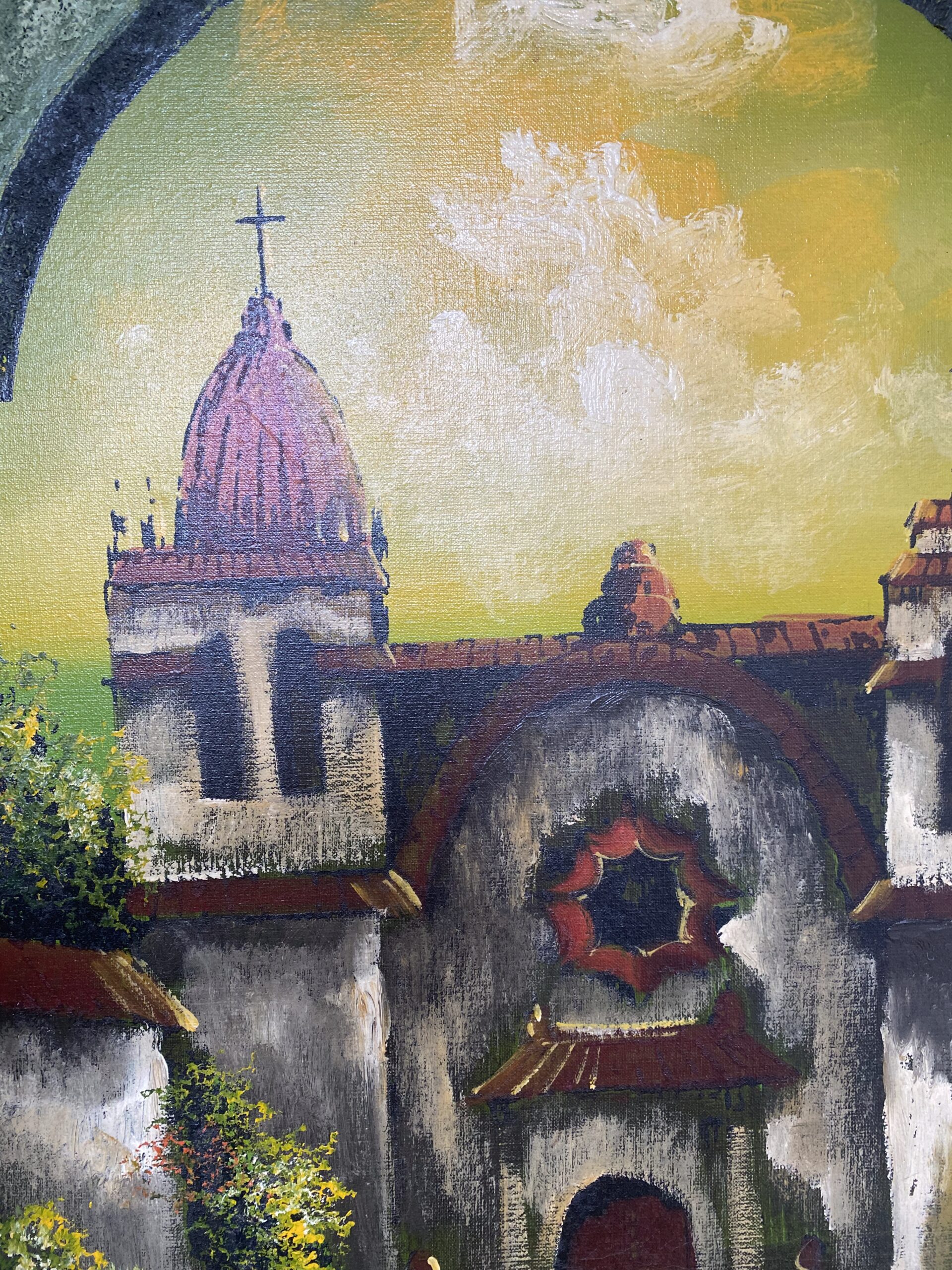 Mid Century Large Oil Painting- Spanish Mission