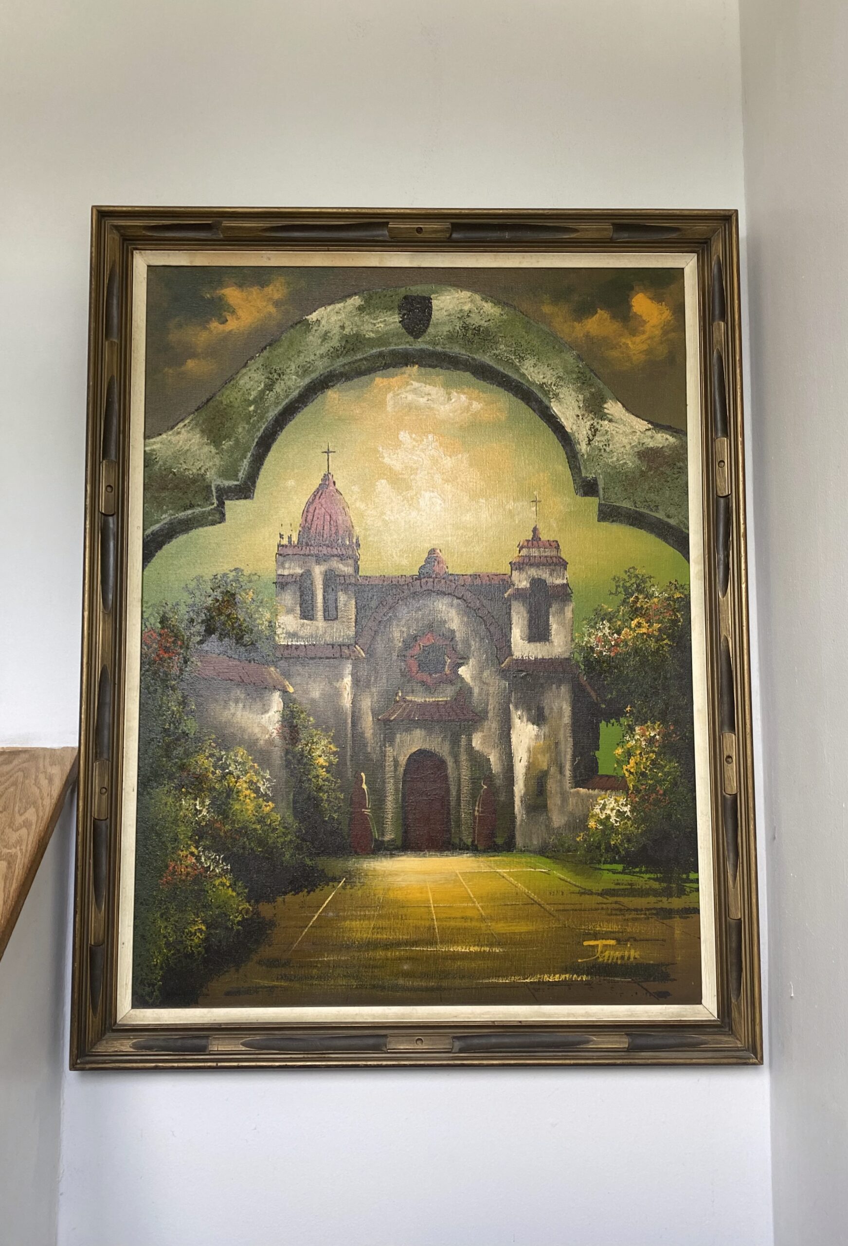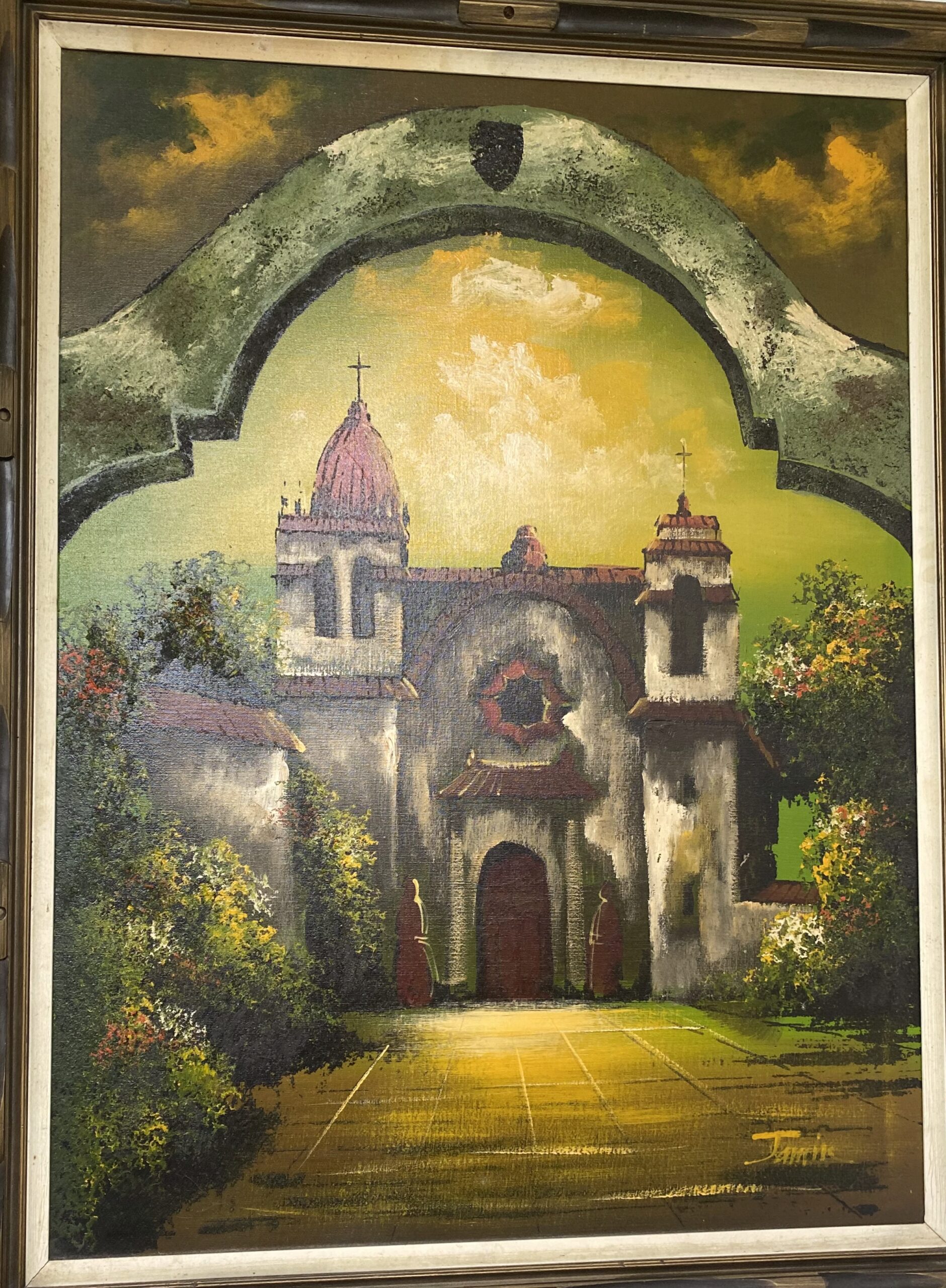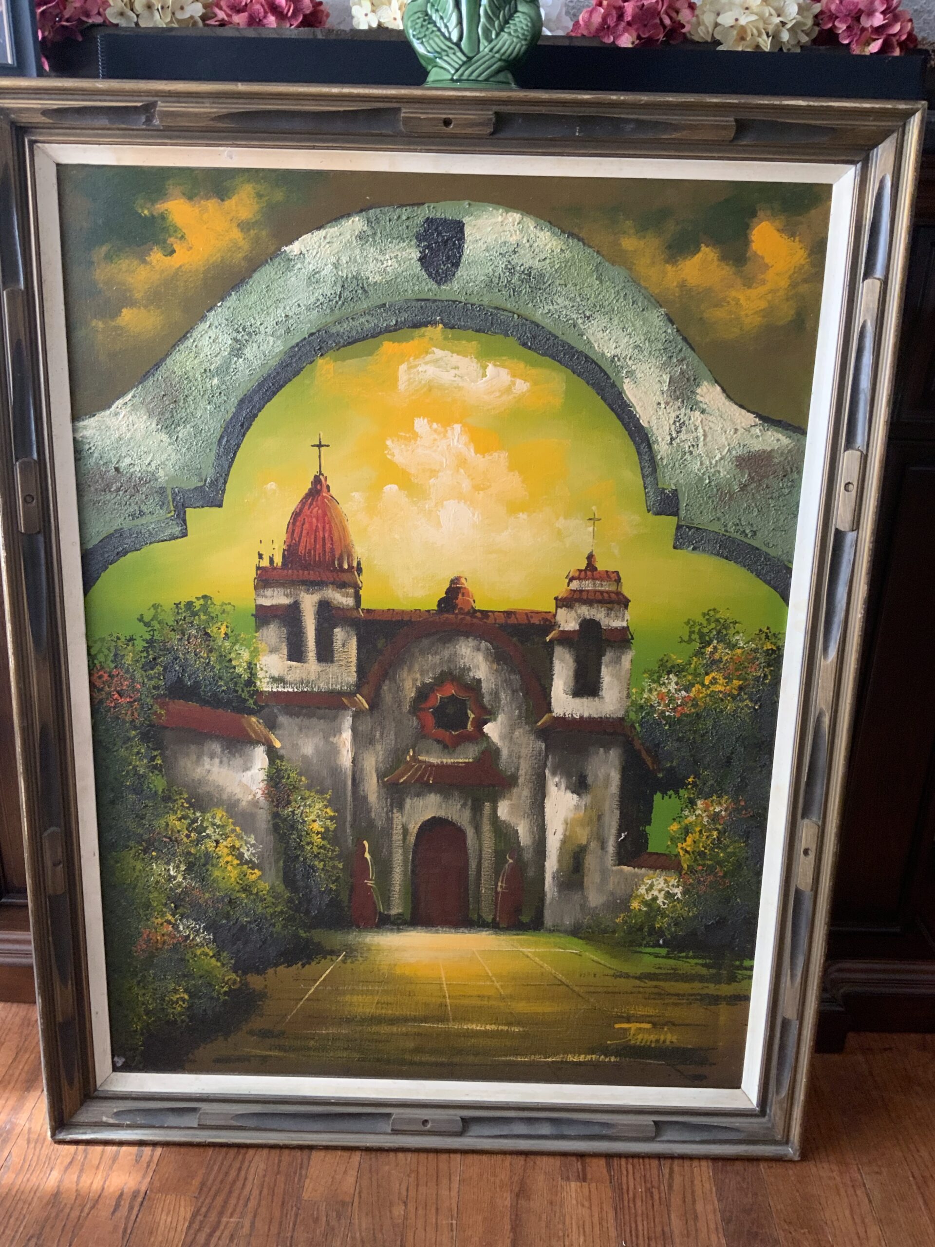 Mid Century Large Oil Painting- Spanish Mission