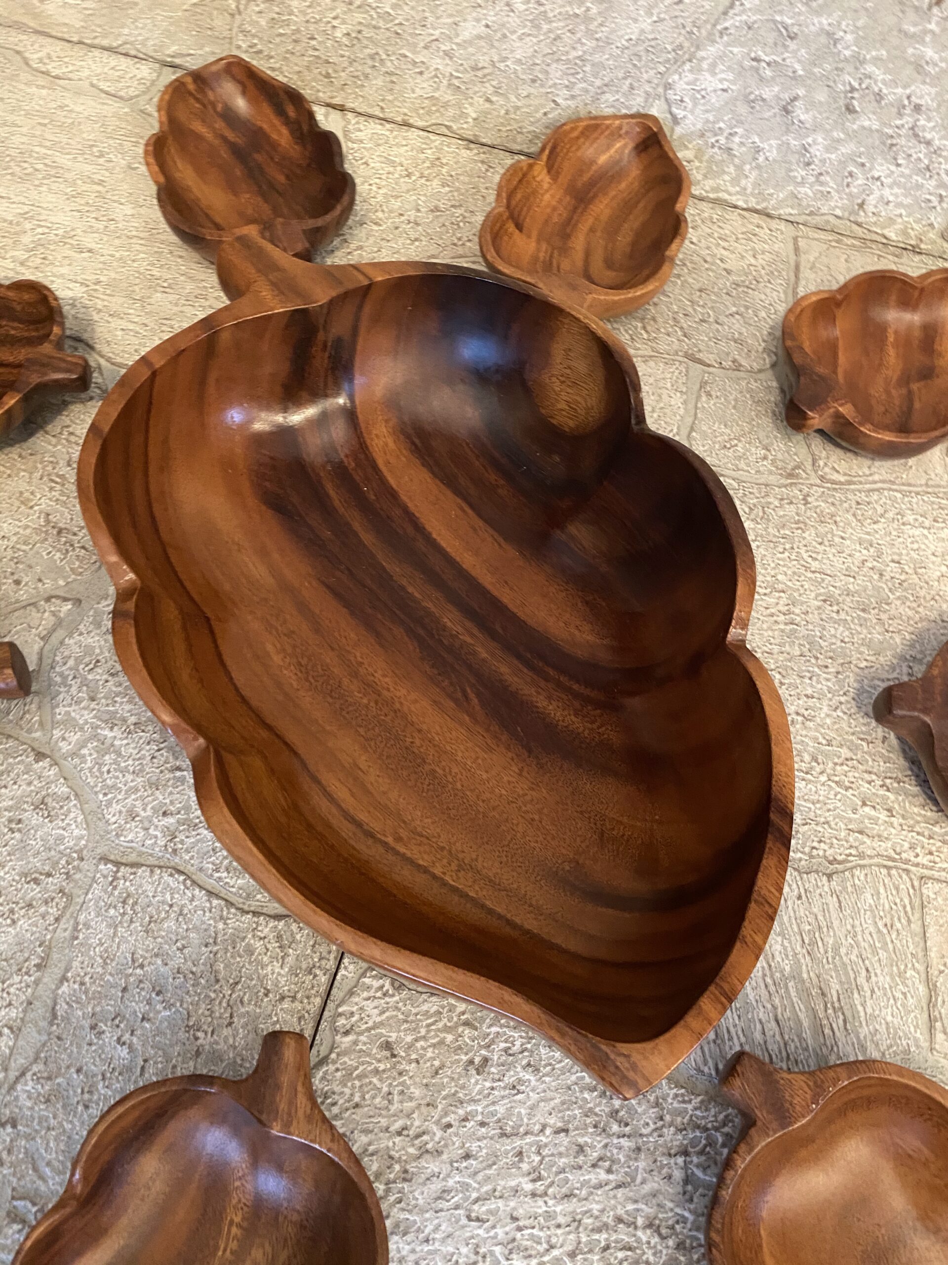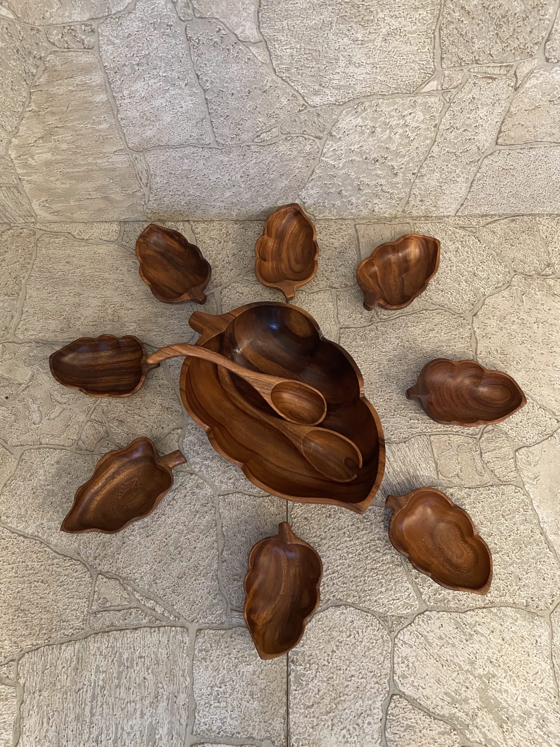 Monkey Pod Salad Serving Set RARE Large Salad Platter w/8 Serving Bowls
