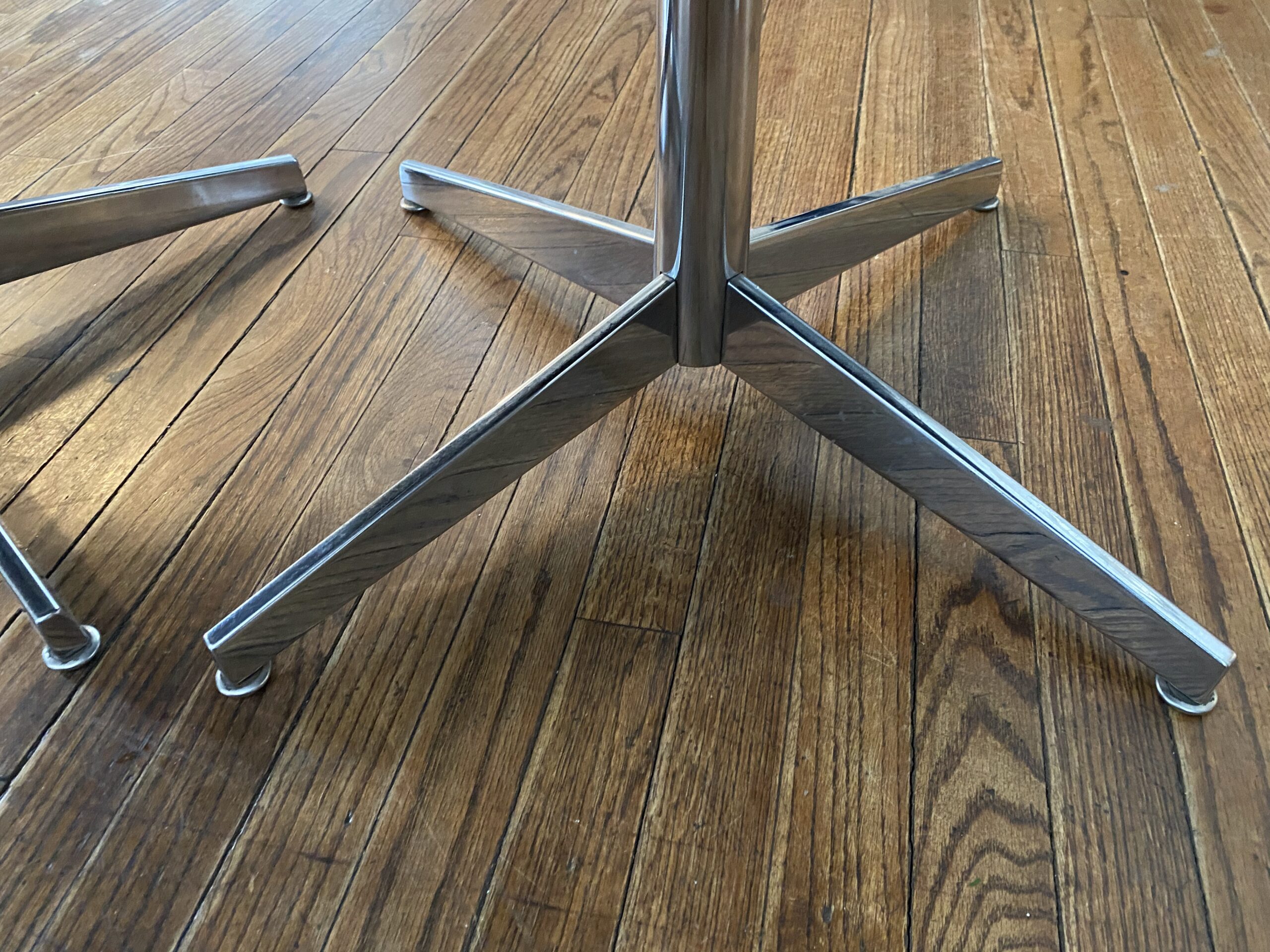 Unique MCM molded acrylic and aluminum patio tables, set of 3. 1 Large, 2 small. Bottle...