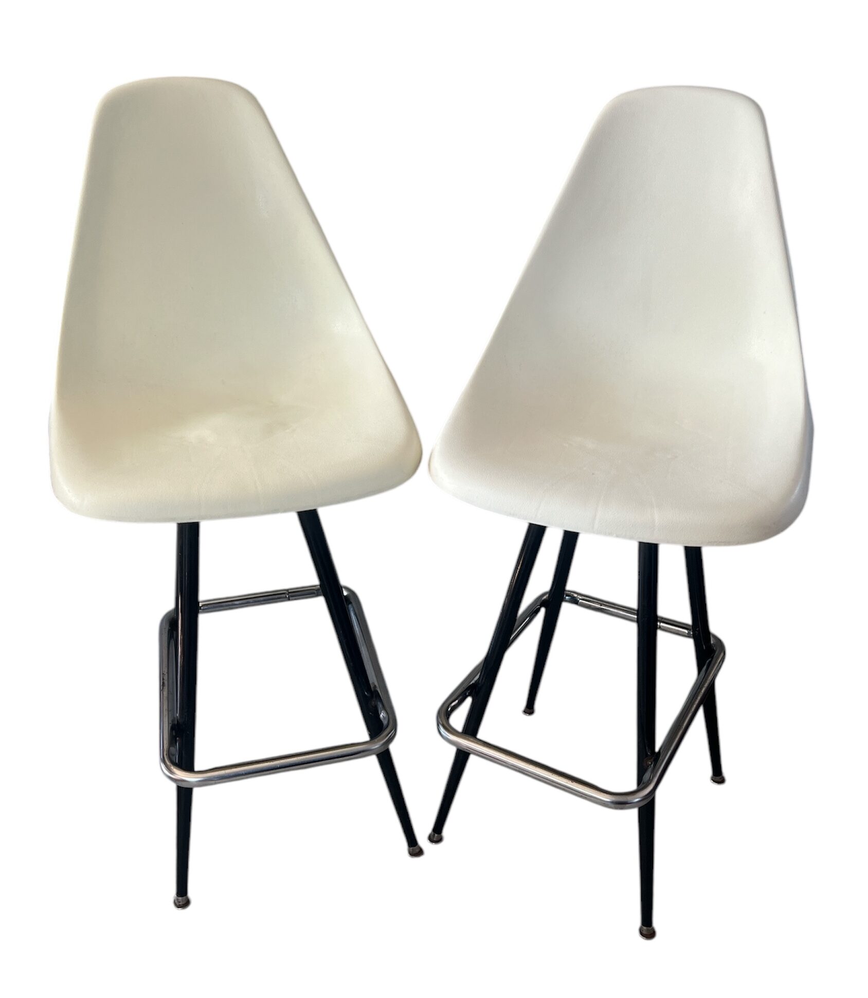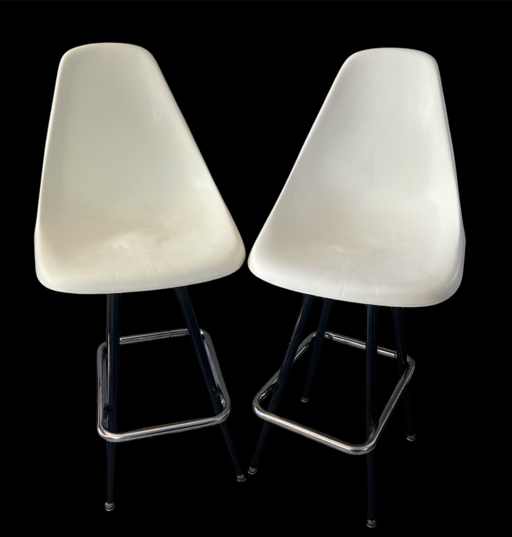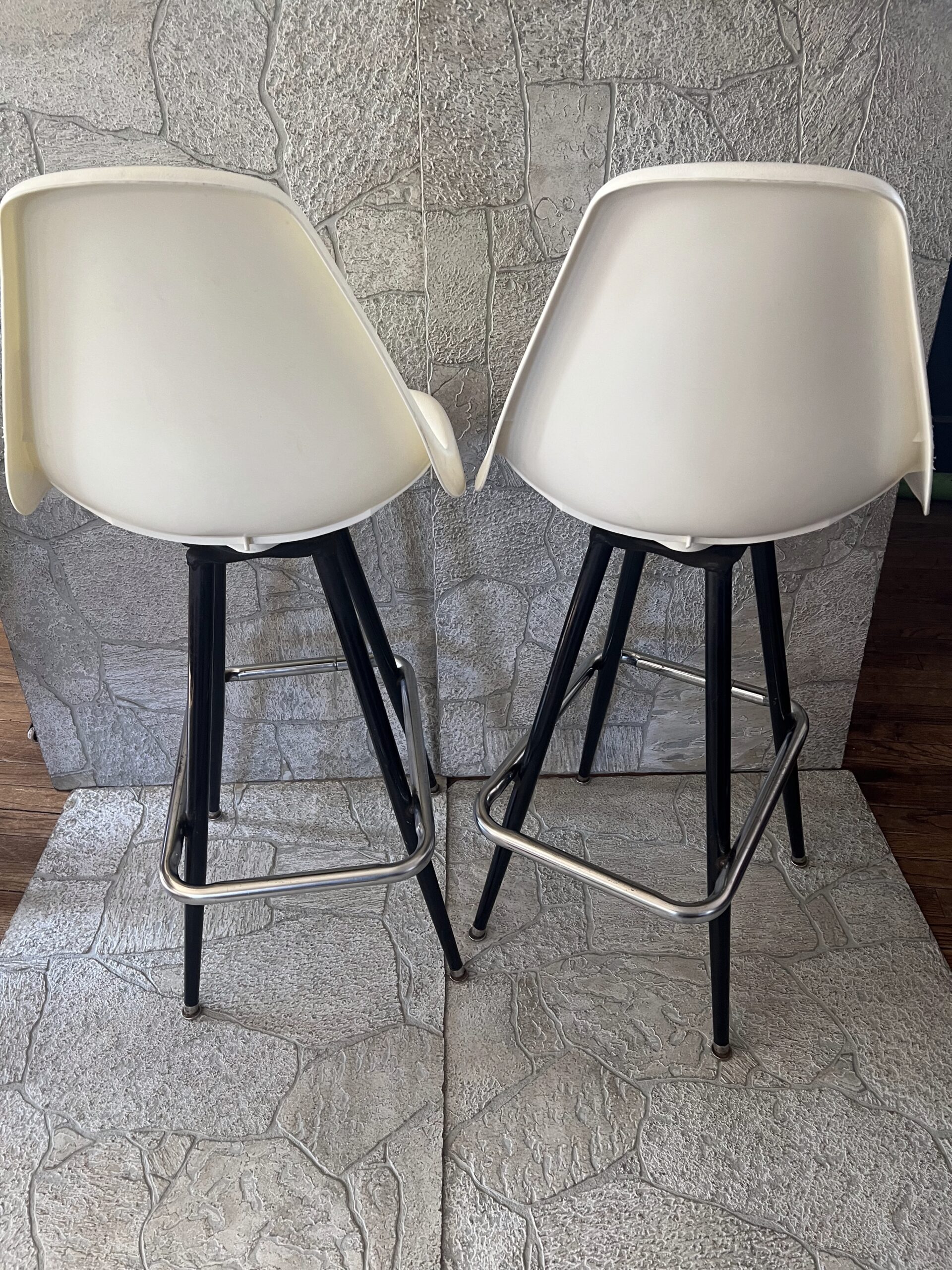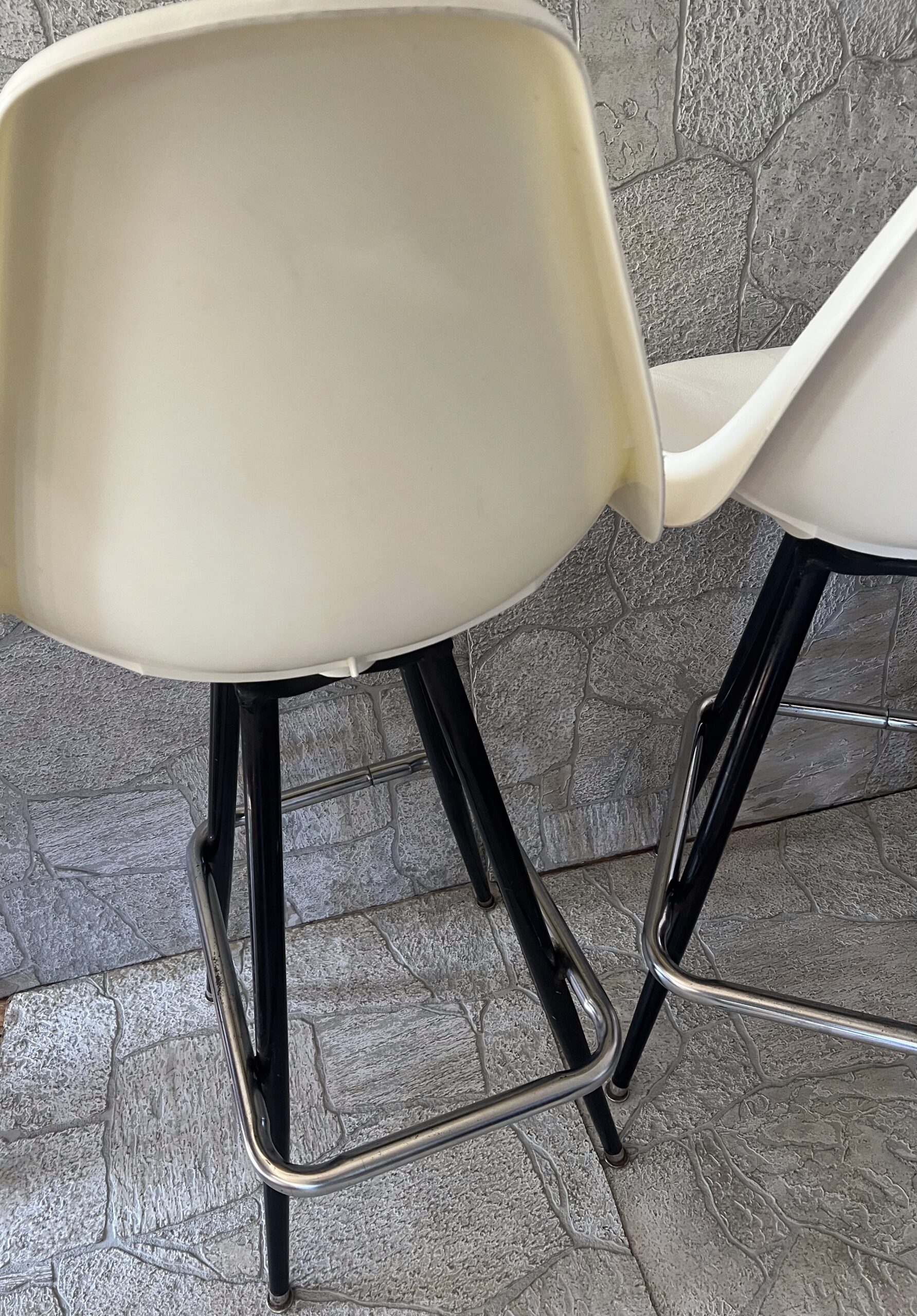 Pair of Vintage Mid-Century Modern Swivel Molded Plastic Bar Stools Eames Style