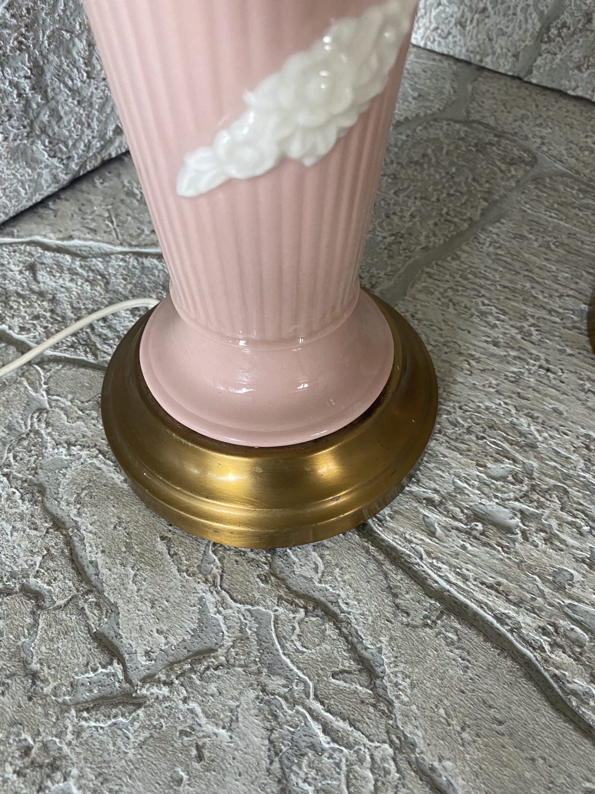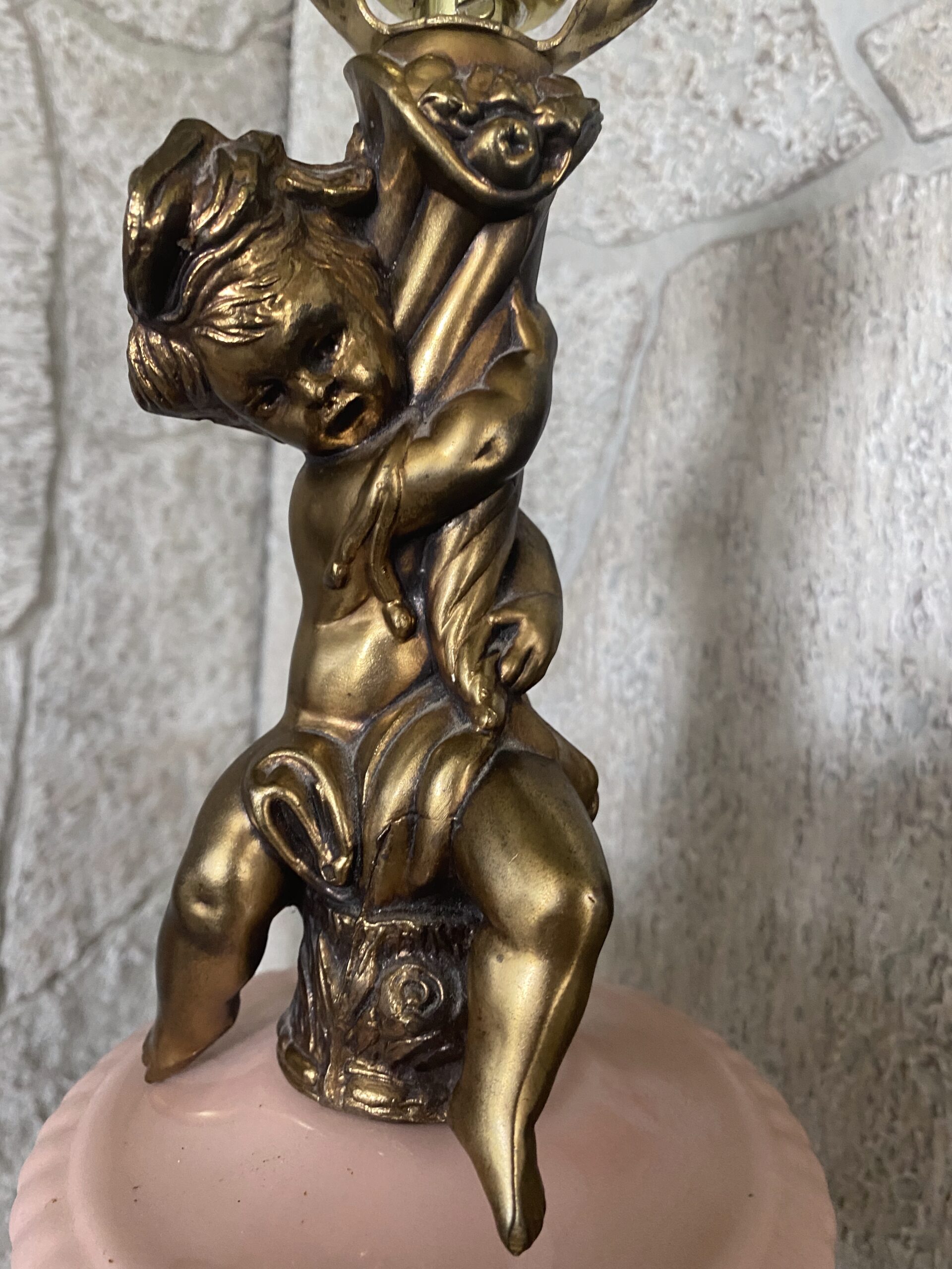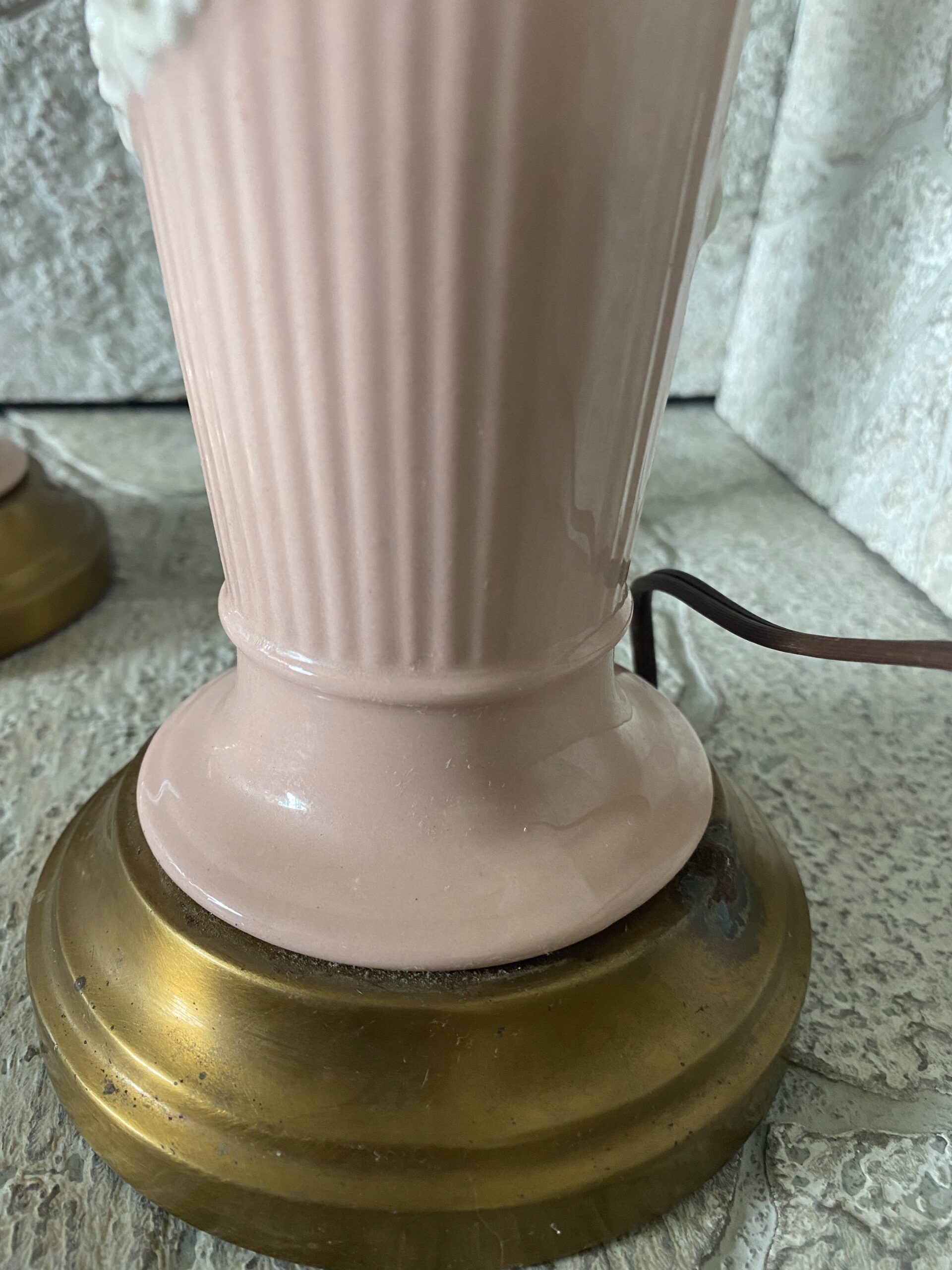 Pink Porcelain Ceramic Cherub Lamp Pair / Hollywood Regency Pink Ceramic