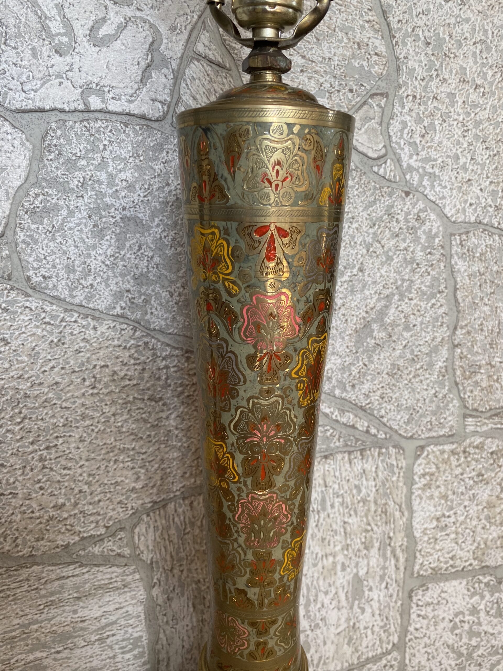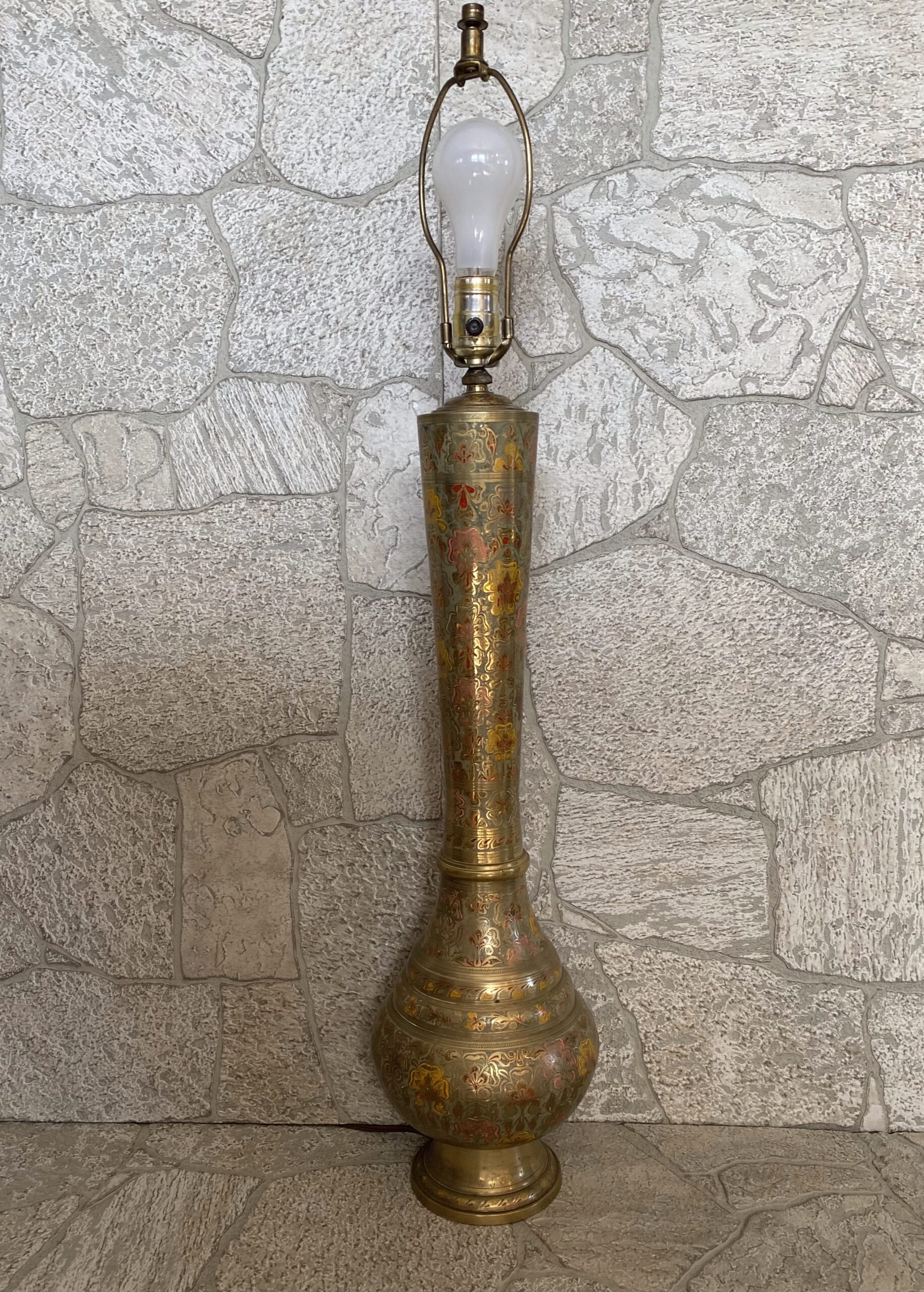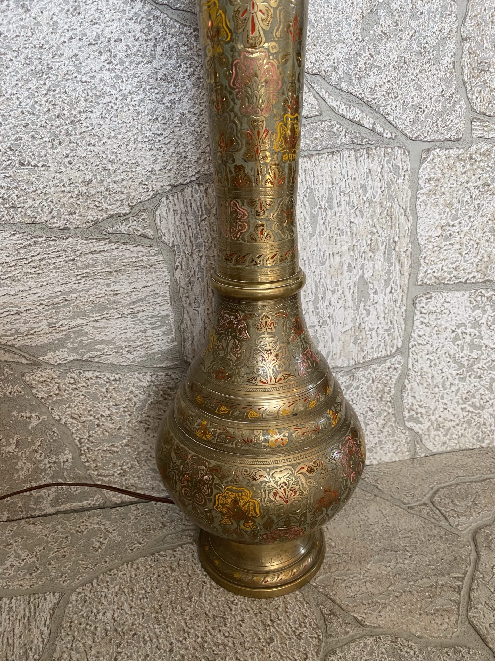 Turkish Vintage Tall Brass Lamp /Middle Eastern Ornate Etched Brass Lamp