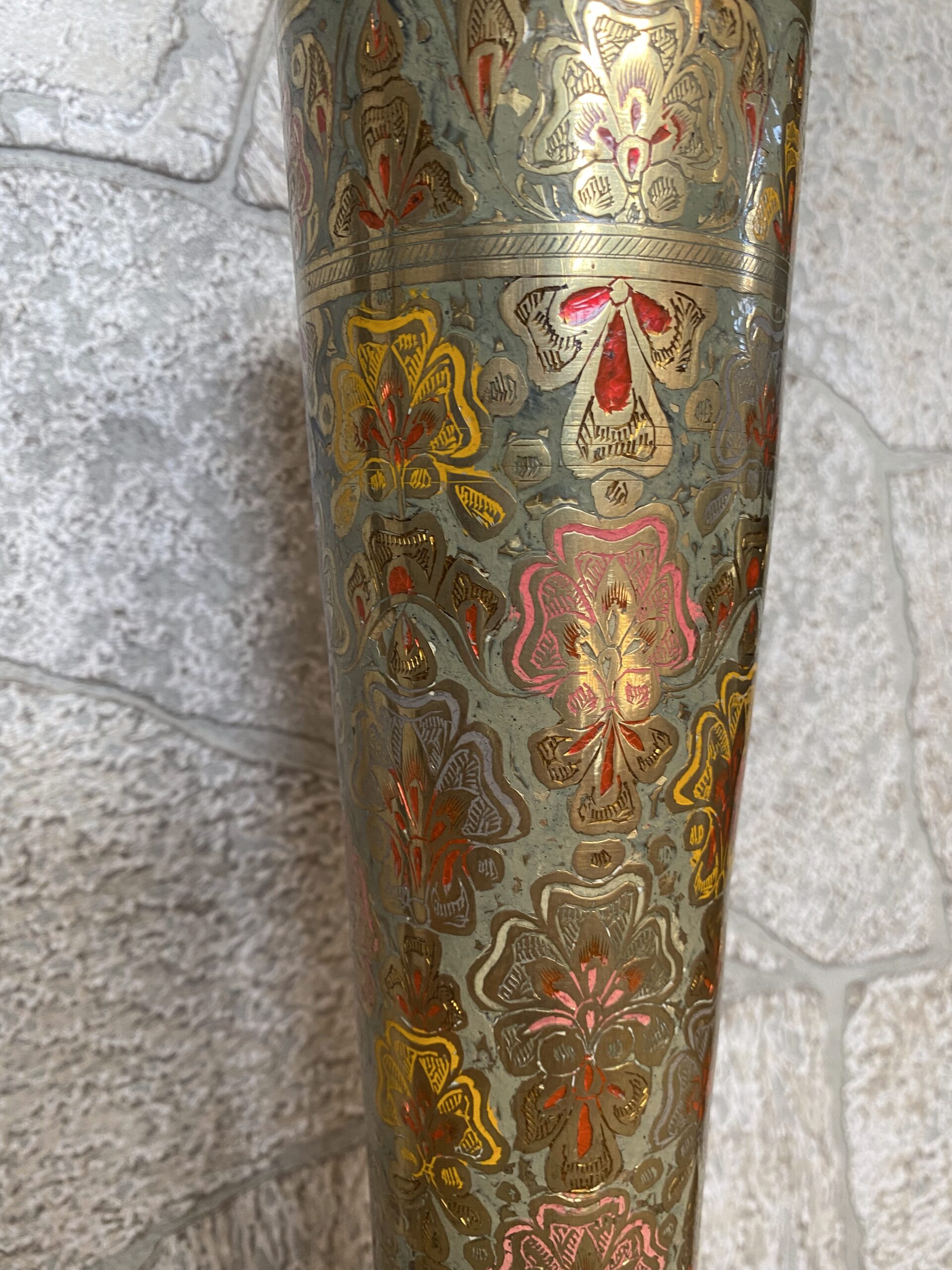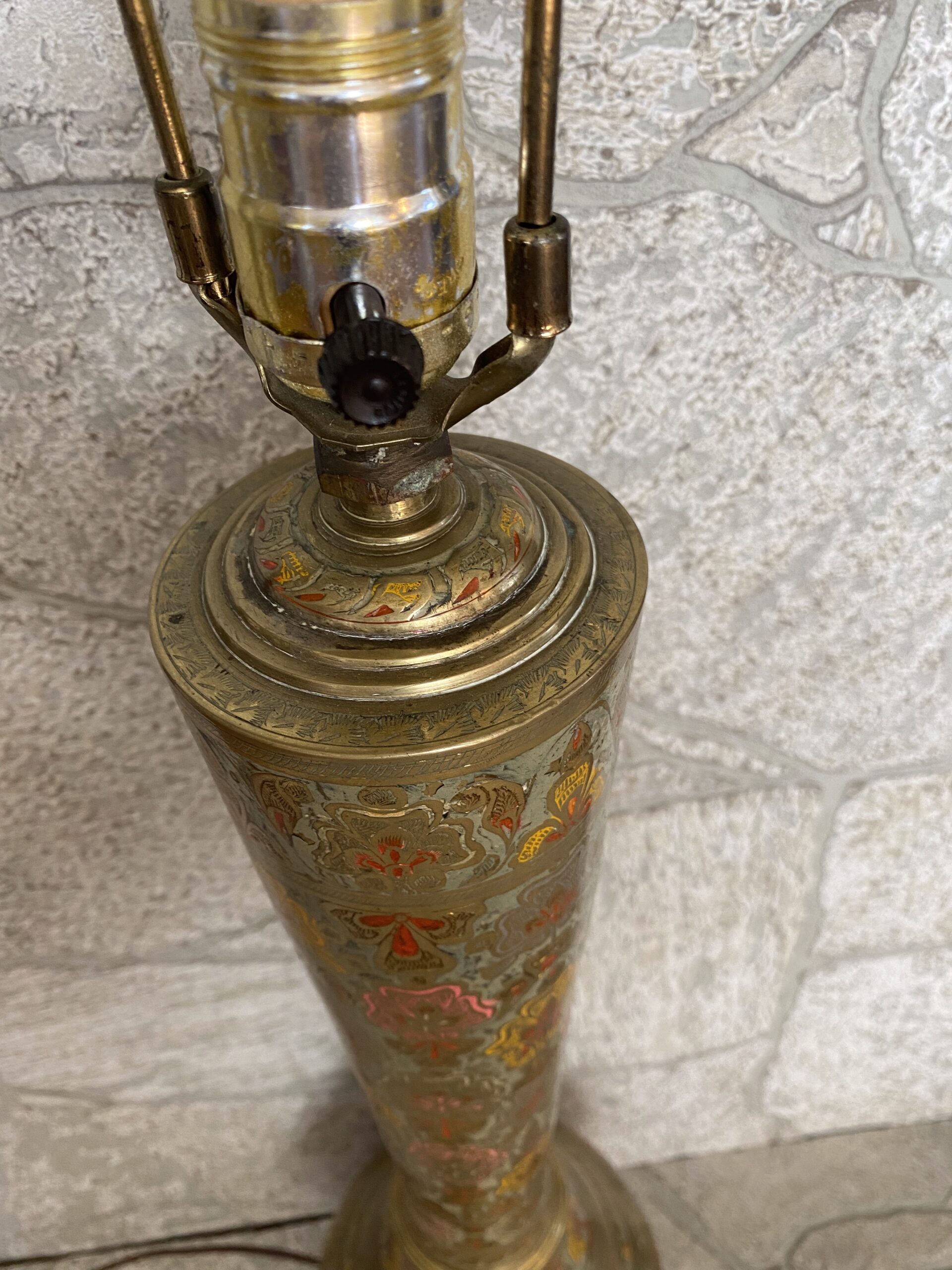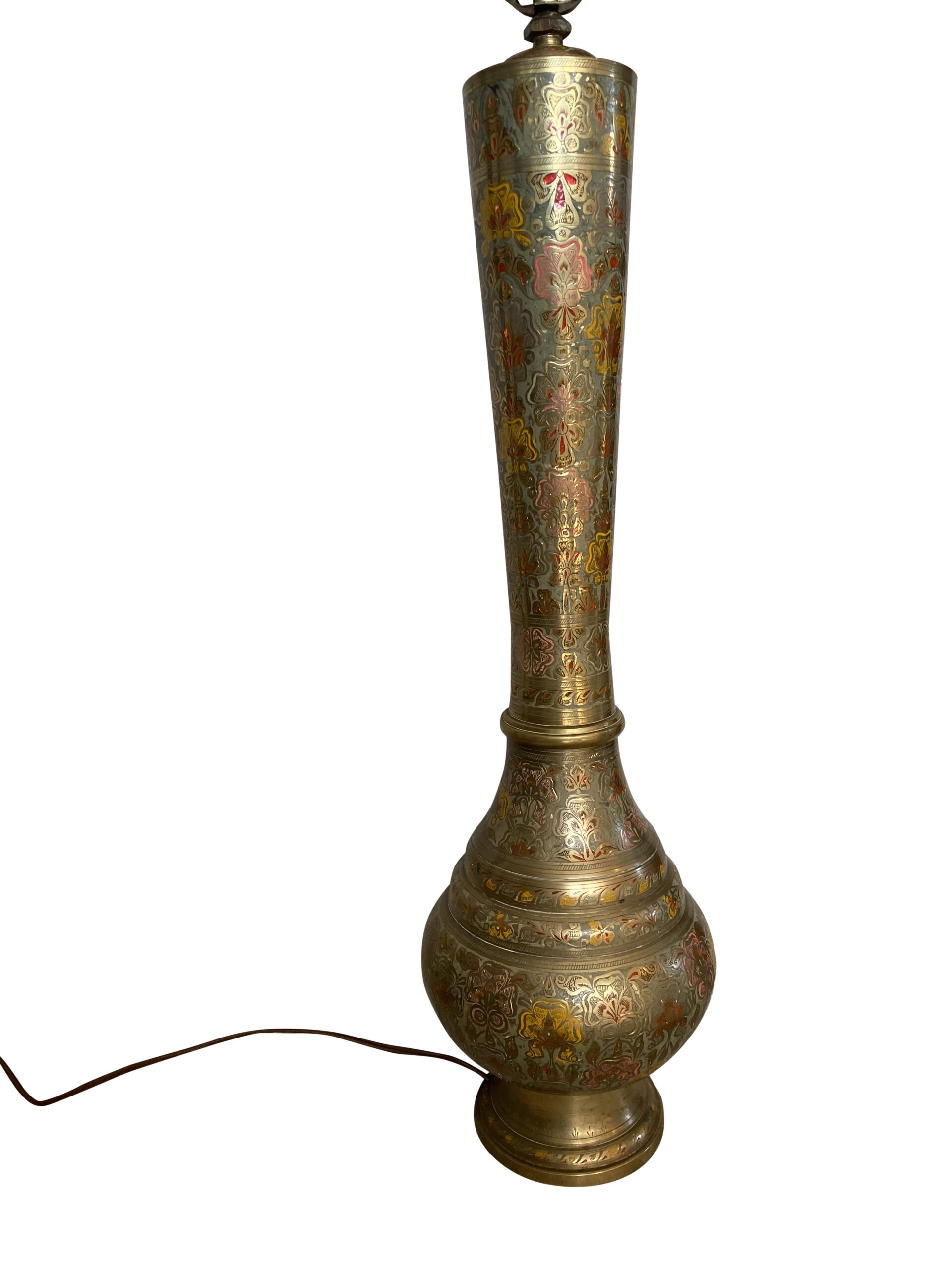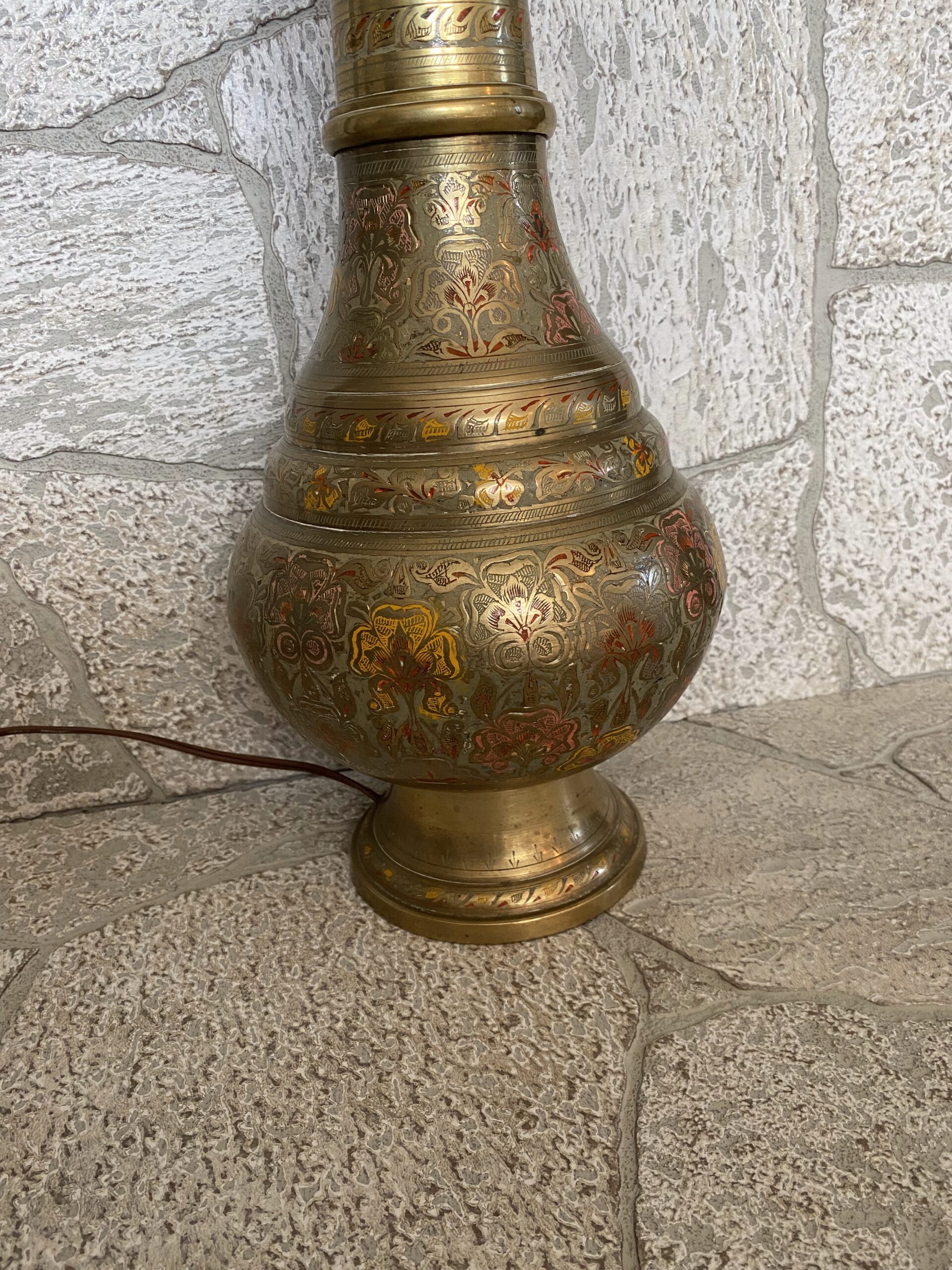 Turkish Vintage Tall Brass Lamp /Middle Eastern Ornate Etched Brass Lamp