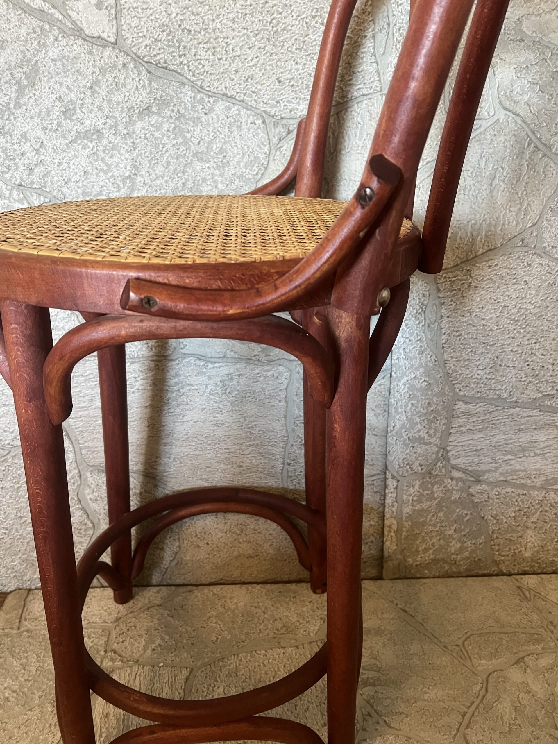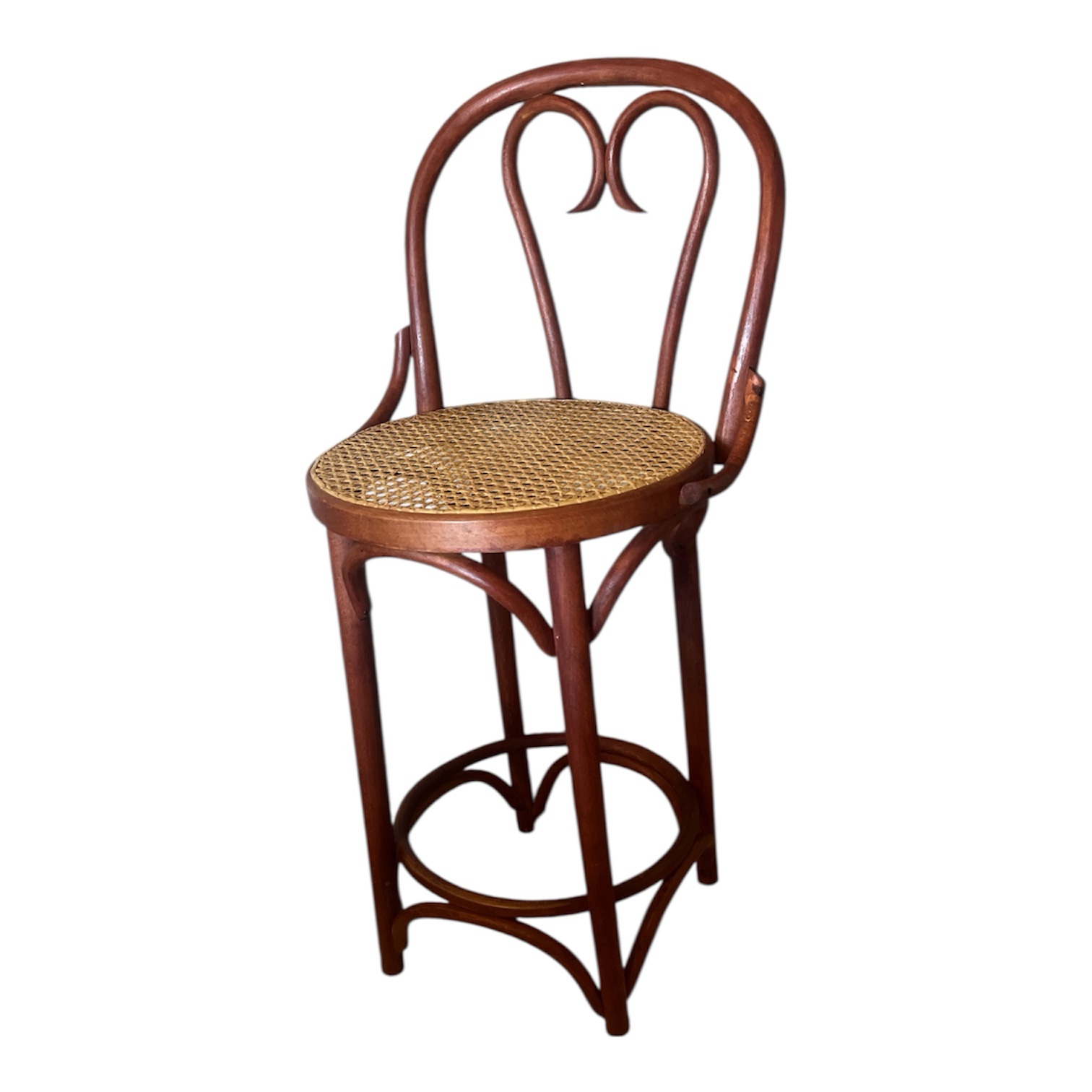 Vintage Bentwood Bar Stool: Thonet Style Cane Seat, Made in Romania