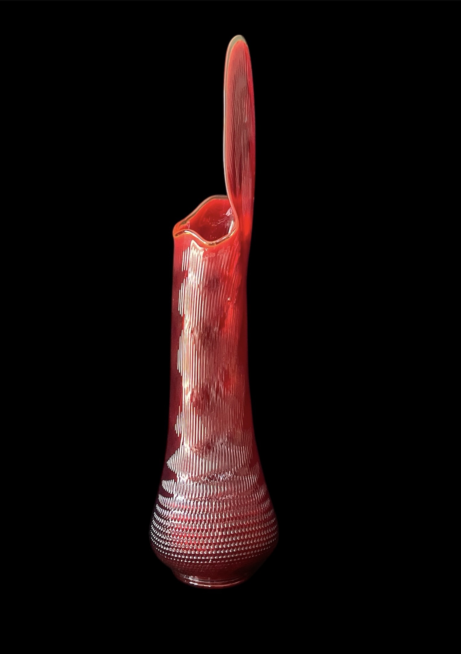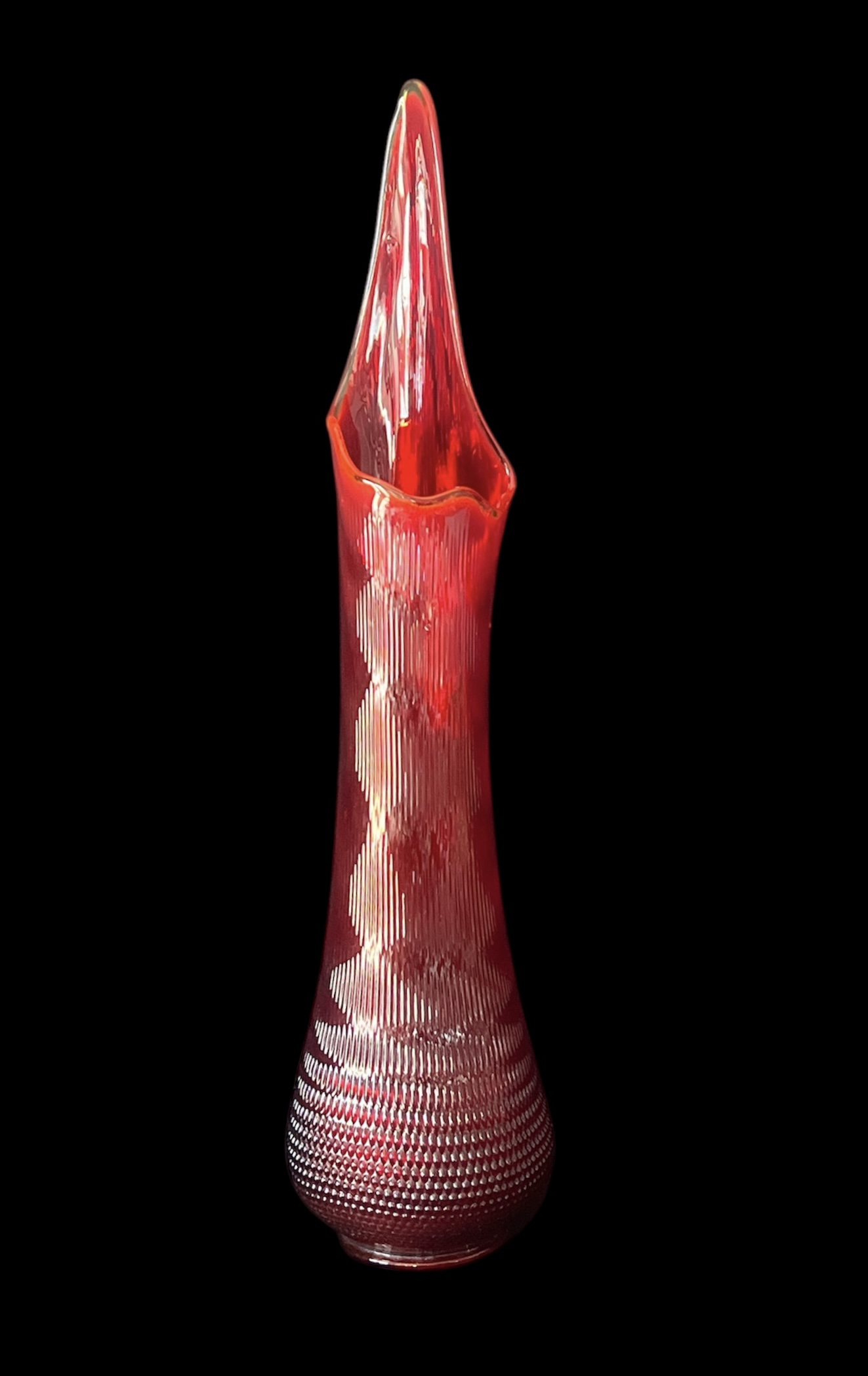 Vintage LE Smith Swung Glass Vase 34” Tall Ruby Red Mid-Century Modern XLarge Vase