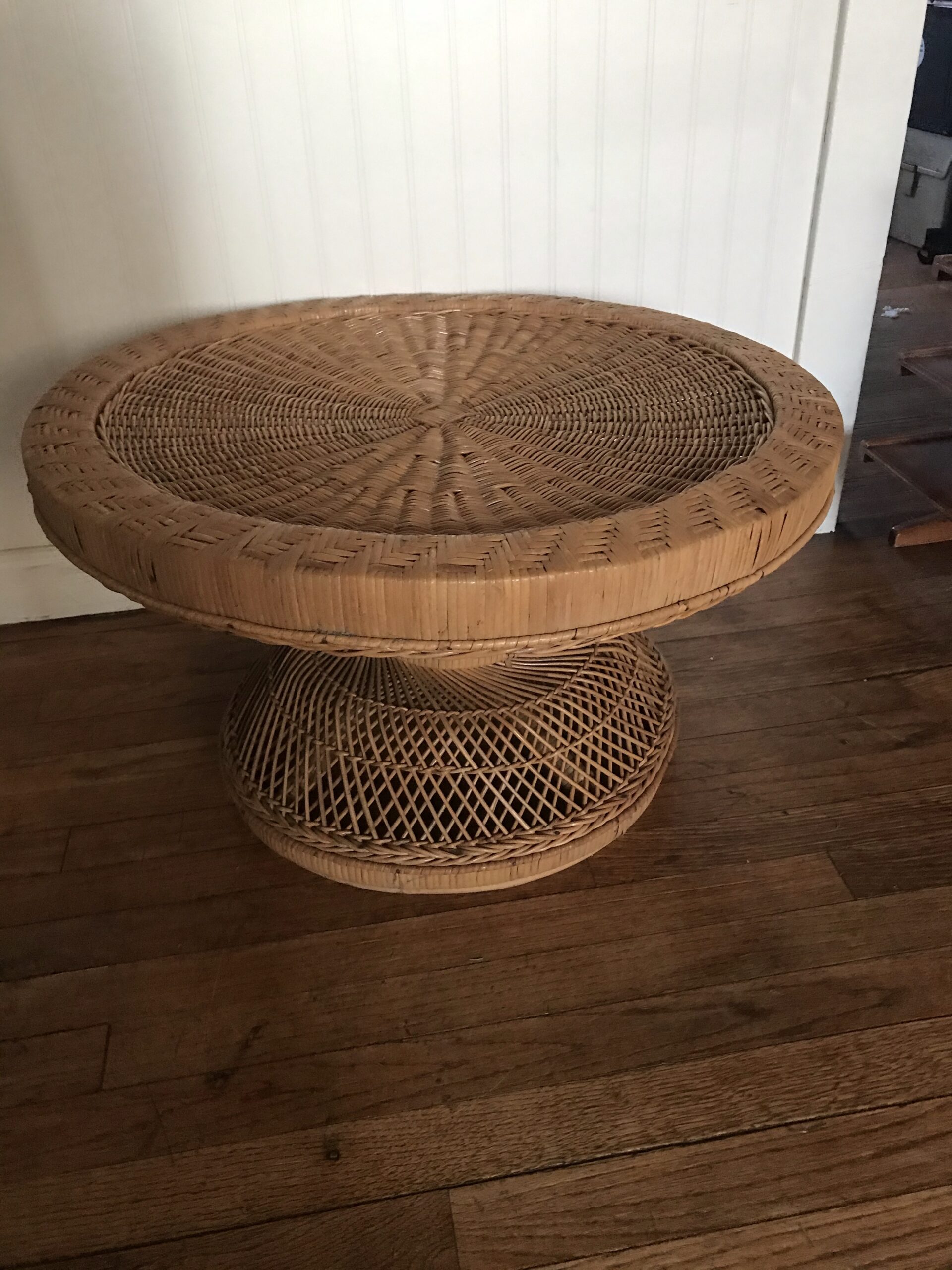 Vintage Peacock Wicker Table Emmanuelle. Rare Find! Rattan Table