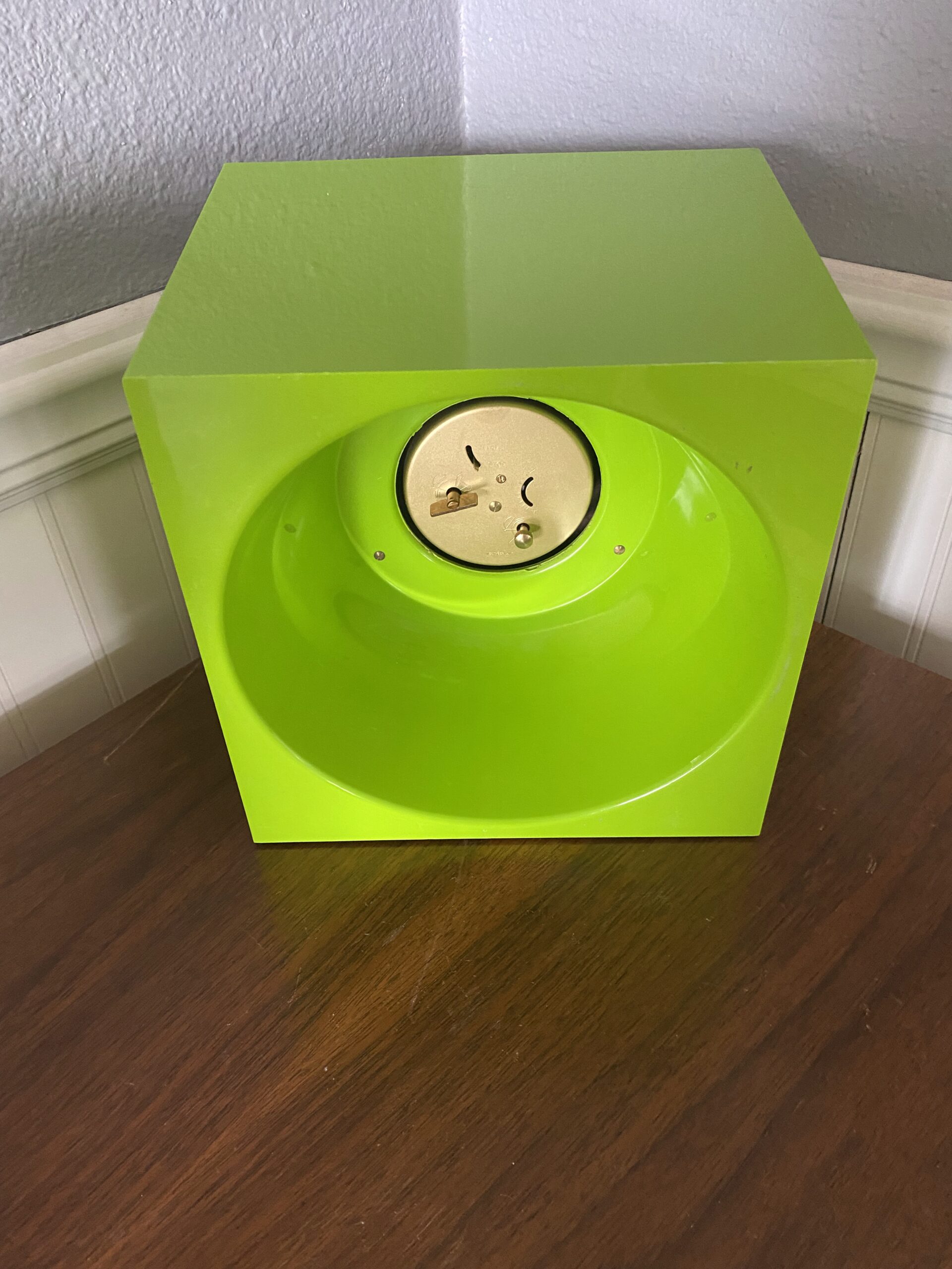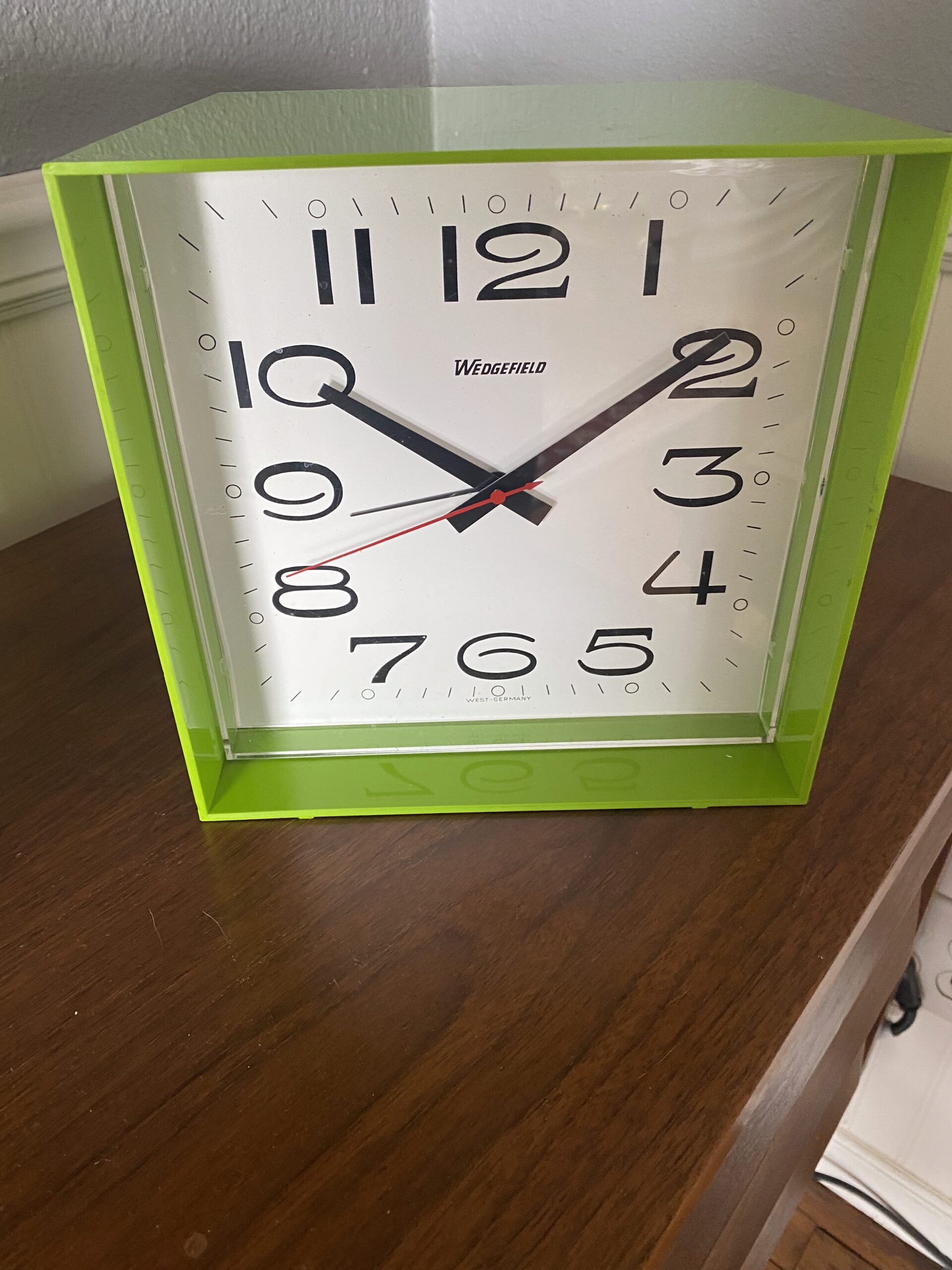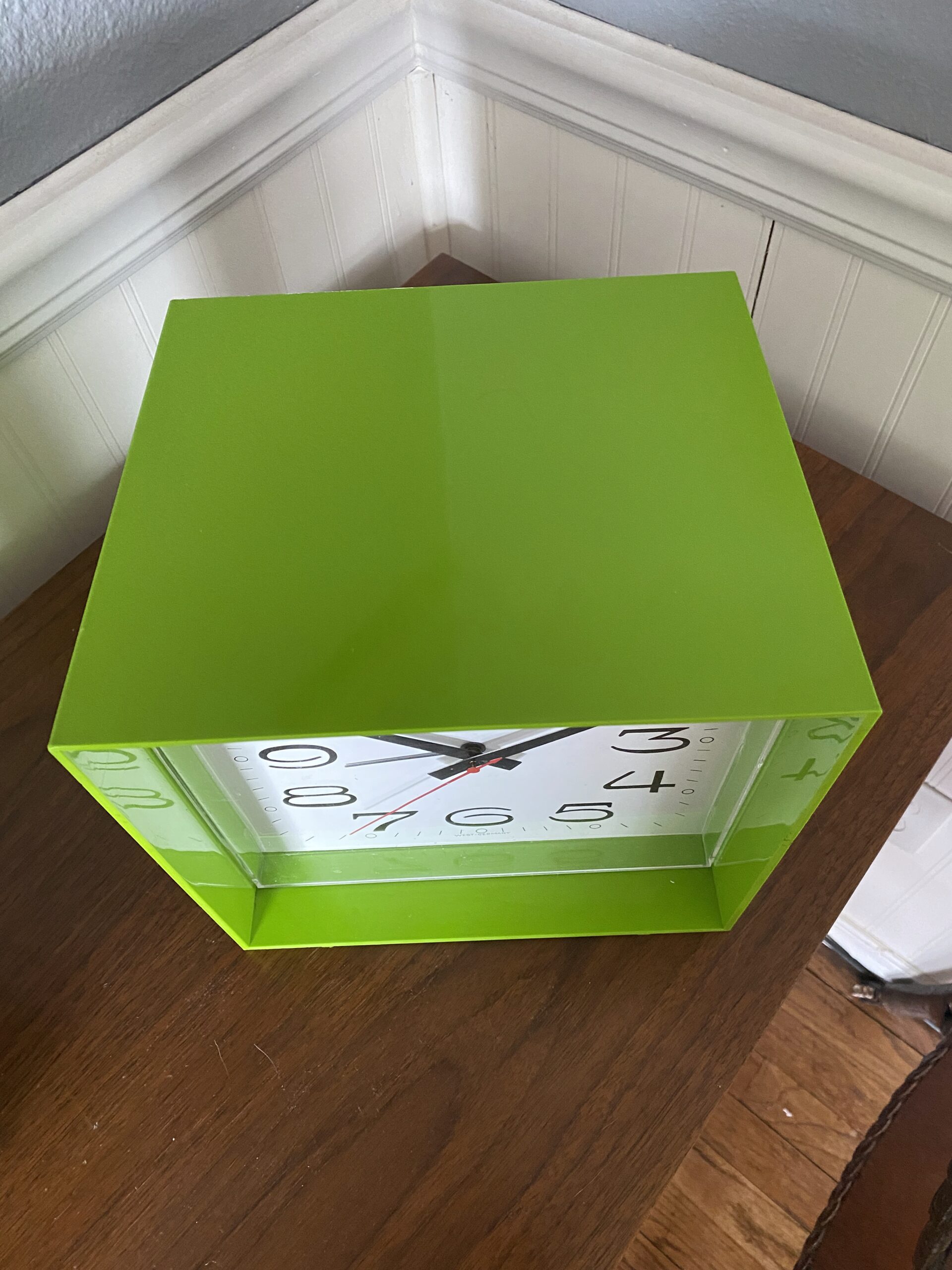Vintage Wedgefield Cube Clock / West Germany Lime Green Mod Cube Clock/ 60s Mod