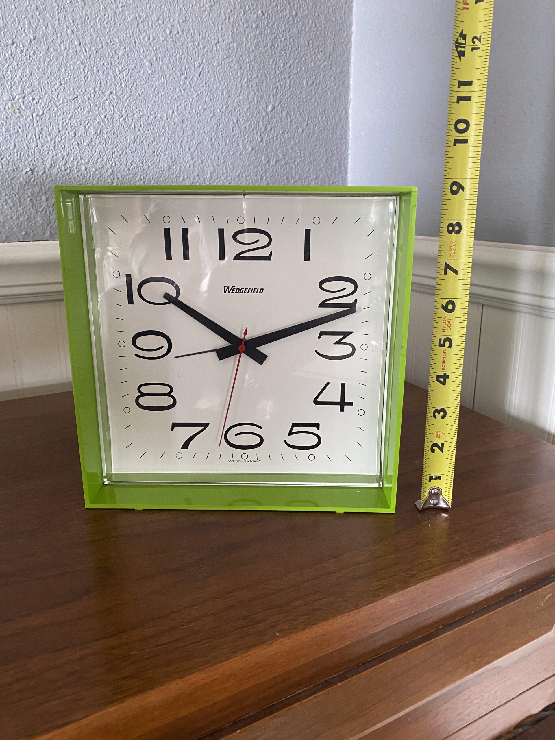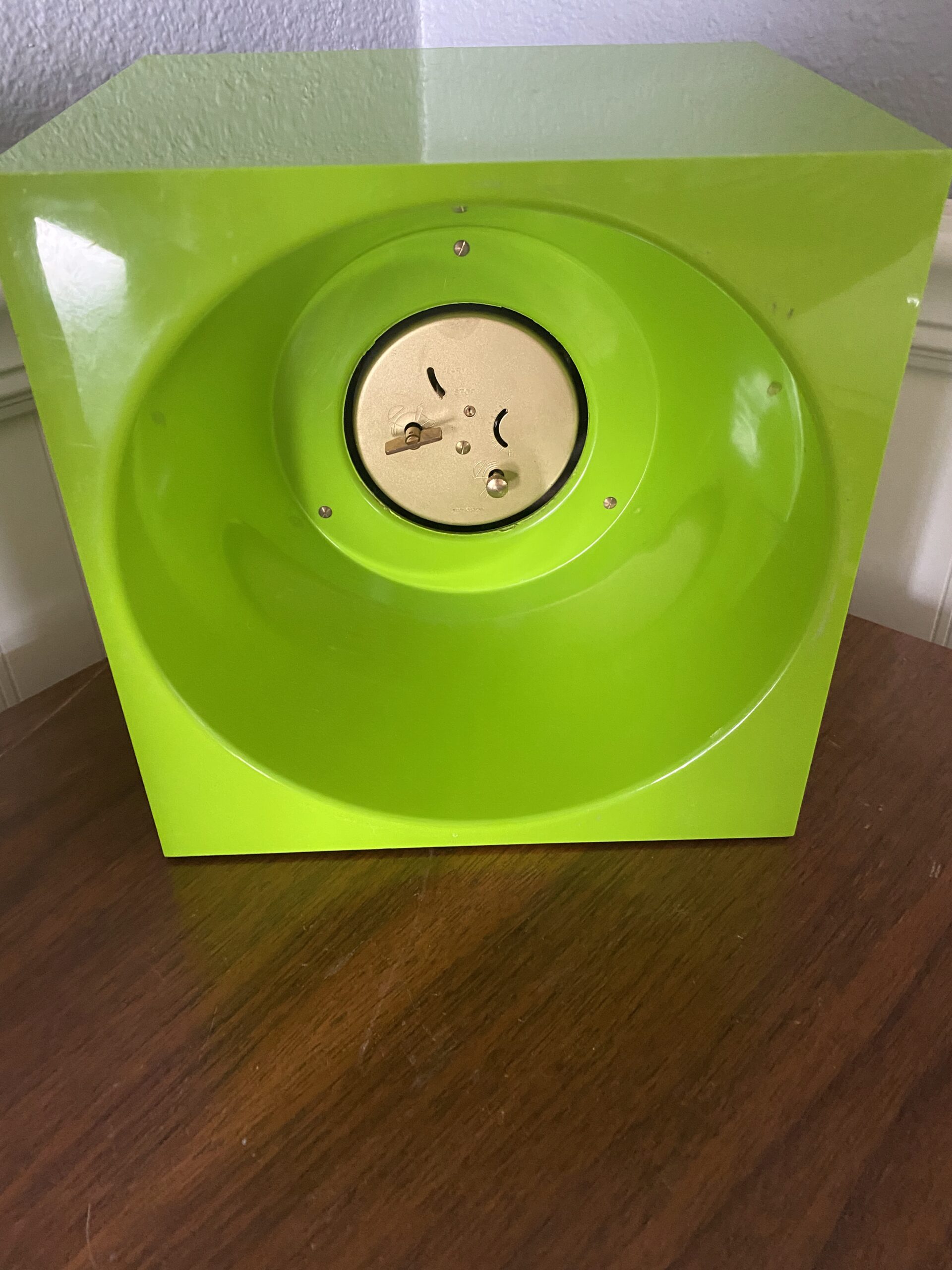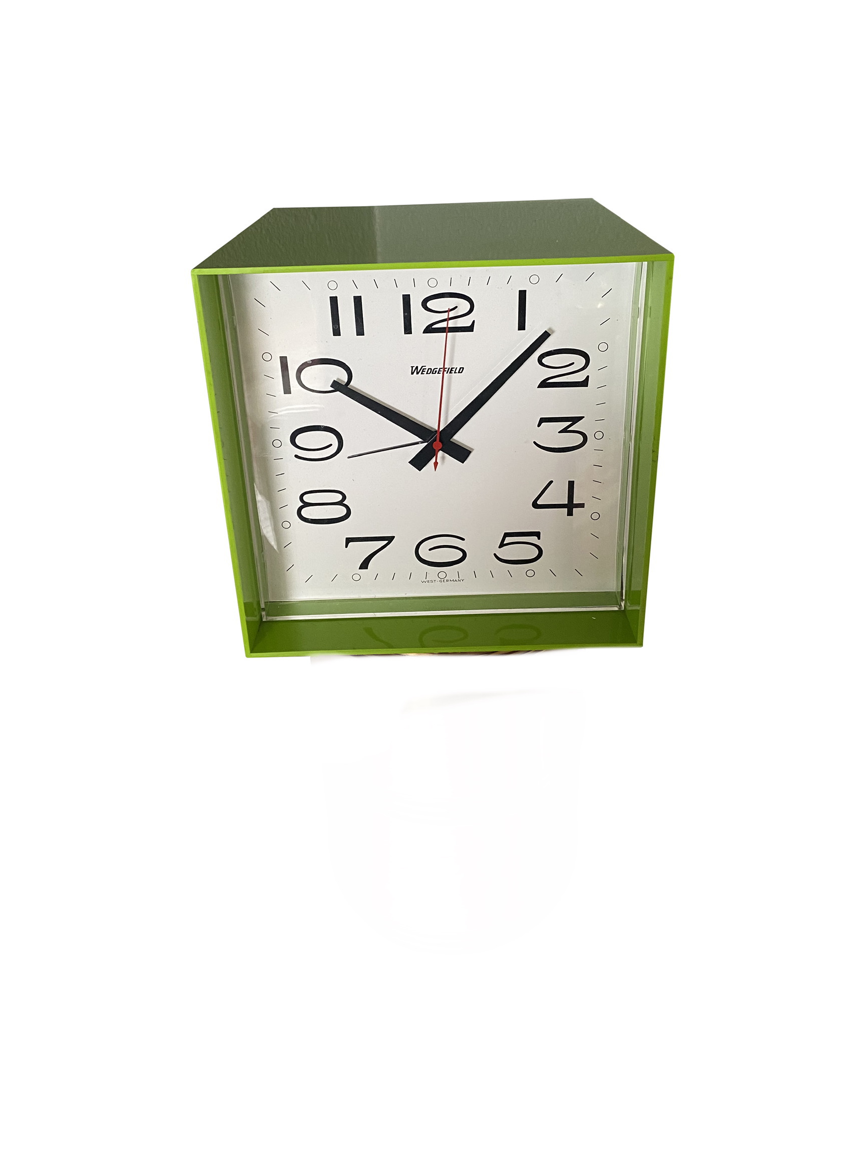 Vintage Wedgefield Cube Clock / West Germany Lime Green Mod Cube Clock/ 60s Mod